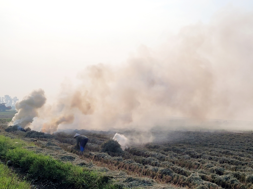 Đốt rơm, rạ gây ô nhiễm môi trường và ảnh hưởng đến người tham gia giao thông cũng như sinh hoạt của người dân địa phương.