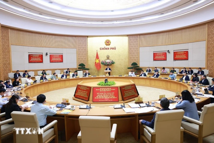 Hội nghị của Chính phủ quán triệt, triển khai Tổng kết việc thực hiện Nghị quyết số 18-NQ/TW. (Ảnh: Dương Giang/TTXVN)