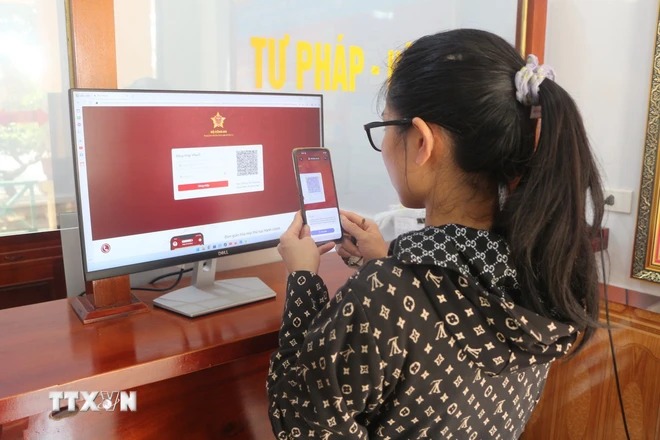Ứng dụng công nghệ thông tin, chính quyền số trong giải quyết thủ tục hành chính cho người dân. (Ảnh: Bích Huệ/TTXVN)