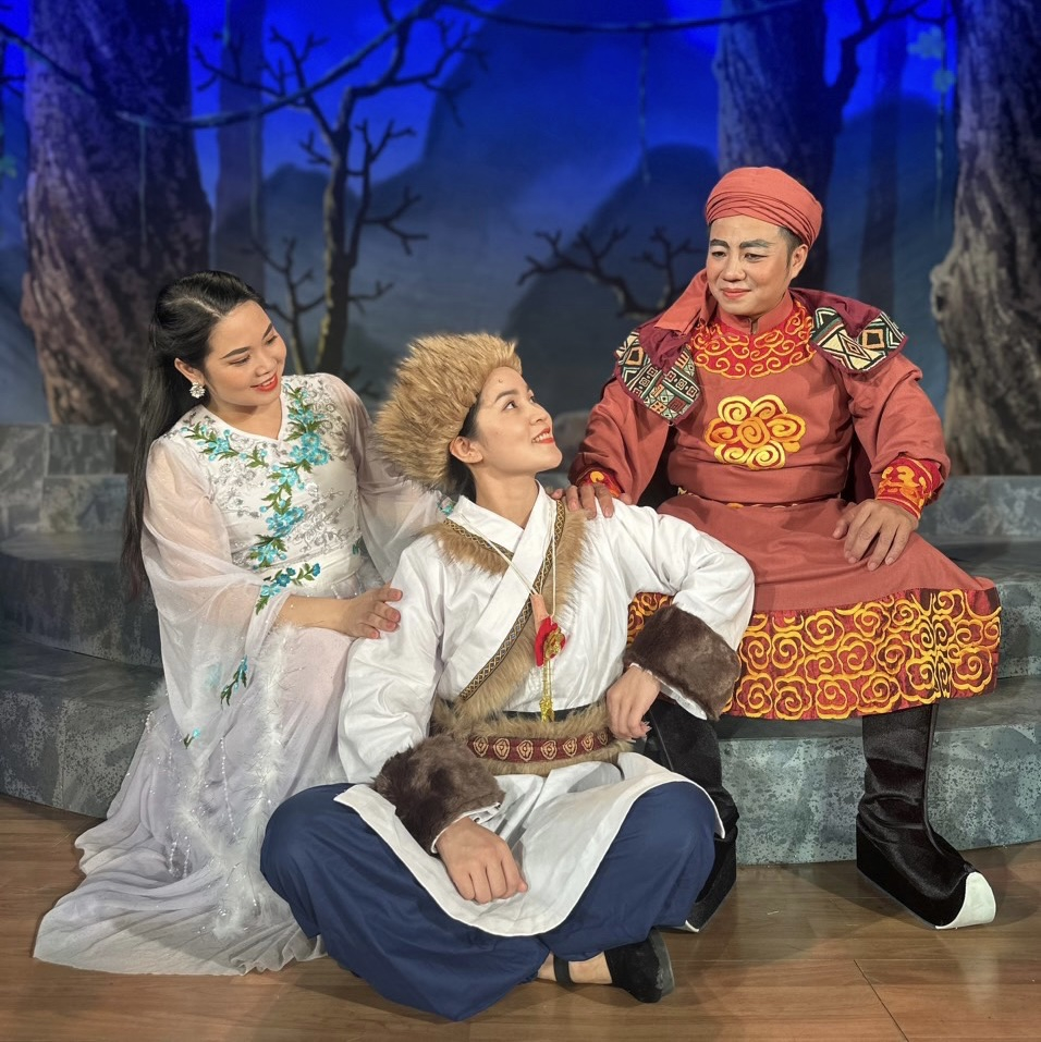 NSƯT Nguyễn Tiến Tùng (ngoài cùng bên phải) trong vở diễn “Hoa gấm ngày xưa”