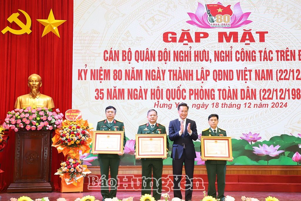 Nhân dịp này, 3 cán bộ quân đội nghỉ hưu, nghỉ công tác trên địa bàn tỉnh được Chủ tịch nước tặng thưởng Huân chương Bảo vệ Tổ quốc hạng Nhất, hạng Ba vì đã có thành tích xuất sắc trong huấn luyện, phục vụ chiến đấu, xây dựng Quân đội nhân dân, củng cố quốc phòng, góp phần vào sự nghiệp xây dựng Chủ nghĩa xã hội và bảo vệ Tổ quốc. Chủ tịch UBND tỉnh tặng Bằng khen cho 5 tập thể, 7 cá nhân có thành tích xuất sắc trong tổ chức, triển khai và thực hiện các hoạt động chào mừng kỷ niệm 80 năm Ngày thành lập Quân đội nhân dân Việt Nam, 35 năm Ngày hội Quốc phòng toàn dân.