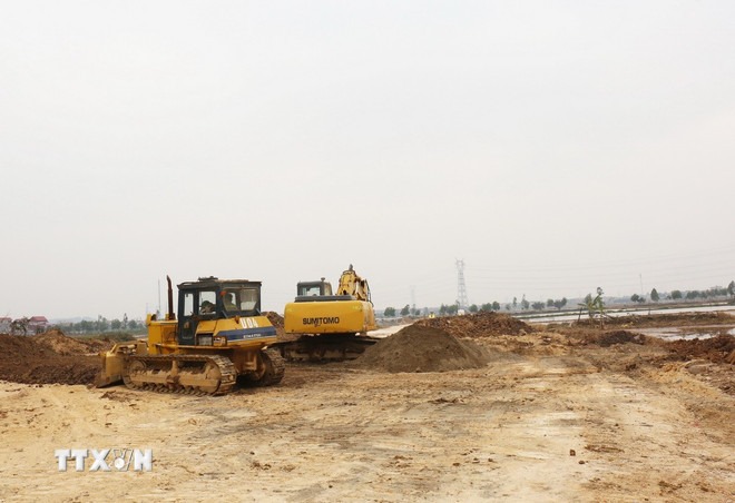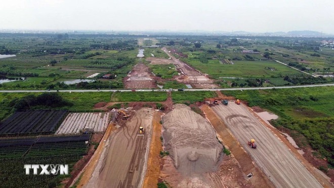 Các nhà thầu đẩy nhanh tiến độ thi công dự án đường Vành đai 4 trên địa bàn thị xã Quế Võ, tỉnh Bắc Ninh. (Ảnh tư liệu: Thanh Thương/TTXVN)