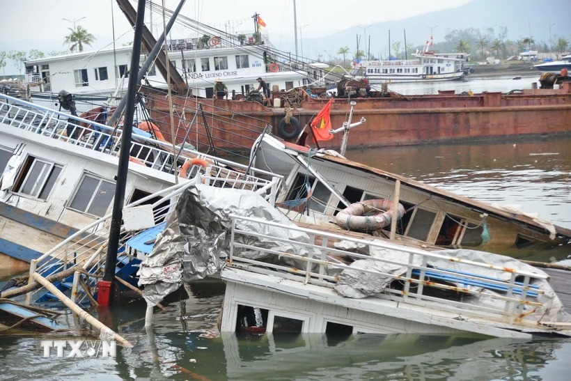 Những con tàu chở khách tham quan vịnh Hạ Long giờ chỉ còn là đống sắt vụn. (Ảnh: Thanh Vân/TTXVN)