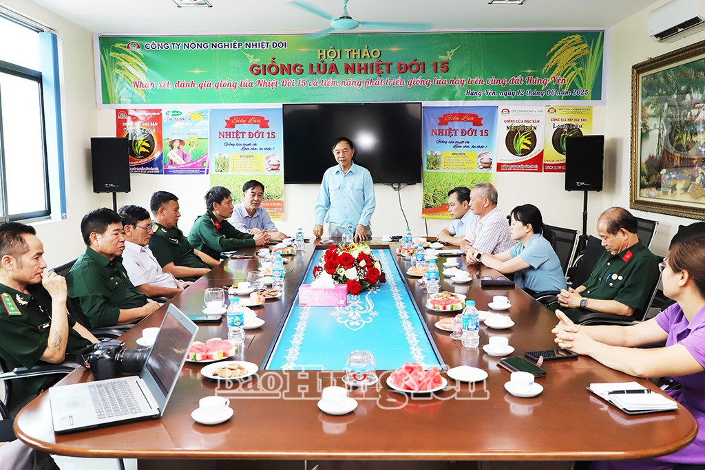 Sáng 12/6, tại xã Tân Quang (Văn Lâm), Công ty TNHH Nông nghiệp nhiệt đới tổ chức hội thảo về giống lúa Nhiệt đới 15 của Công ty sản xuất.
