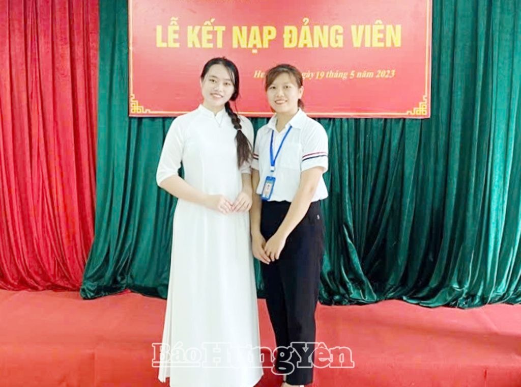 Niềm vui, hạnh phúc của Phạm Thanh Hằng (ảnh trái) tại lễ kết nạp đảng viên