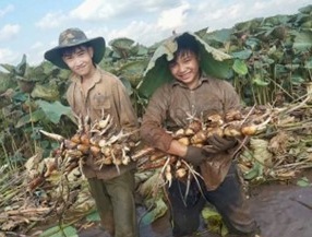 Gia đình anh Nguyễn Đình Hòa ở thôn Duyên Yên, xã Ngọc Thanh (Kim Động) trồng sen Nhật lấy củ cho hiệu quả kinh tế cao