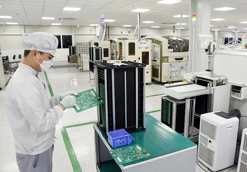 Sản xuất linh kiện điện tử ở Công ty TNHH Bumjin Electronics Vina. (Ảnh AN AN)