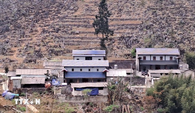Những ngôi nhà mới hoàn thành theo kiến trúc truyền thống vùng Cao nguyên đá Đồng Văn. (Ảnh: Đức Thọ/TTXVN)