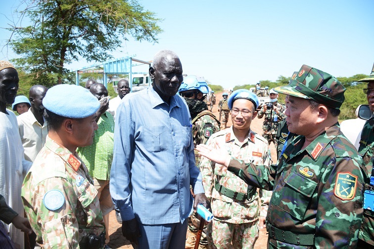 Thượng tướng Hoàng Xuân Chiến, Ủy viên Trung ương Đảng, Thứ trưởng Bộ Quốc phòng thăm Lực lượng gìn giữ hòa bình Liên hợp quốc của Việt Nam tại Phái bộ UNISFA (khu vực Abyei). (Ảnh: Cục Gìn giữ hòa bình Việt Nam)