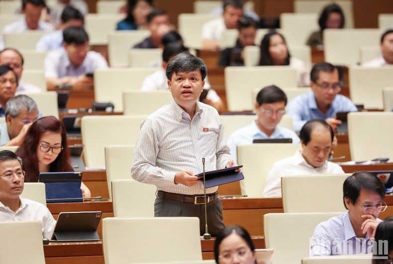 Đại biểu Tạ Đình Thi (Hà Nội) phát biểu tại phiên họp. (Ảnh: DUY LINH)