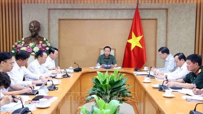 Phó Thủ tướng Lê Thành Long, Tổ trưởng Tổ công tác số 3 phát biểu tại cuộc họp. (Ảnh: TTXVN)