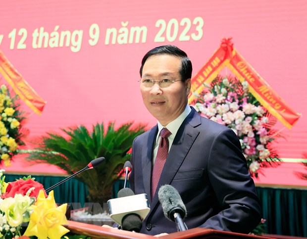 Chủ tịch nước Võ Văn Thưởng phát biểu chỉ đạo. (Ảnh: Thống Nhất/TTXVN)