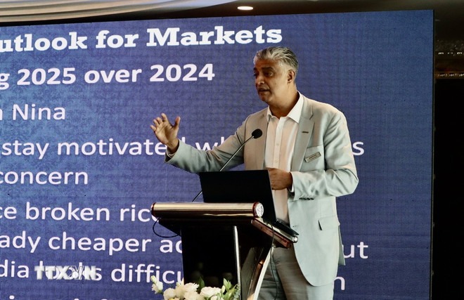 Ông V.Subramanian đồng sáng lập Chuyên trang thị trường lúa gạo Ssricenews phát biểu tại diễn đàn. (Ảnh: Xuân Anh/TTXVN)