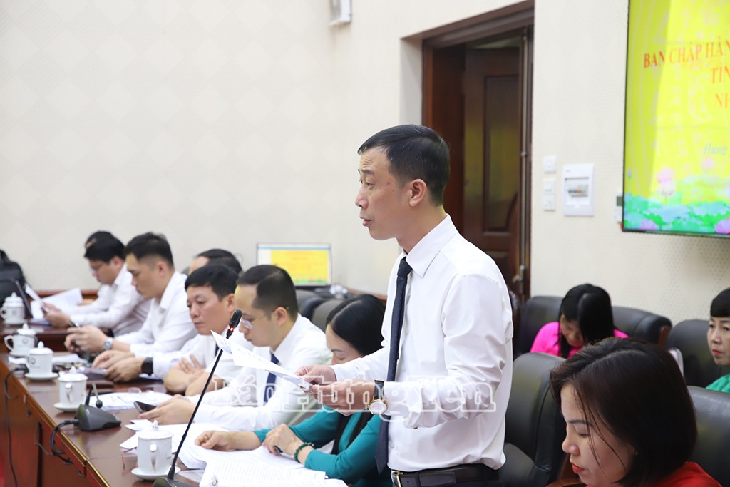 Đại diện Ban Tổ chức Đảng uỷ UBND tỉnh phát biểu tại hội nghị
