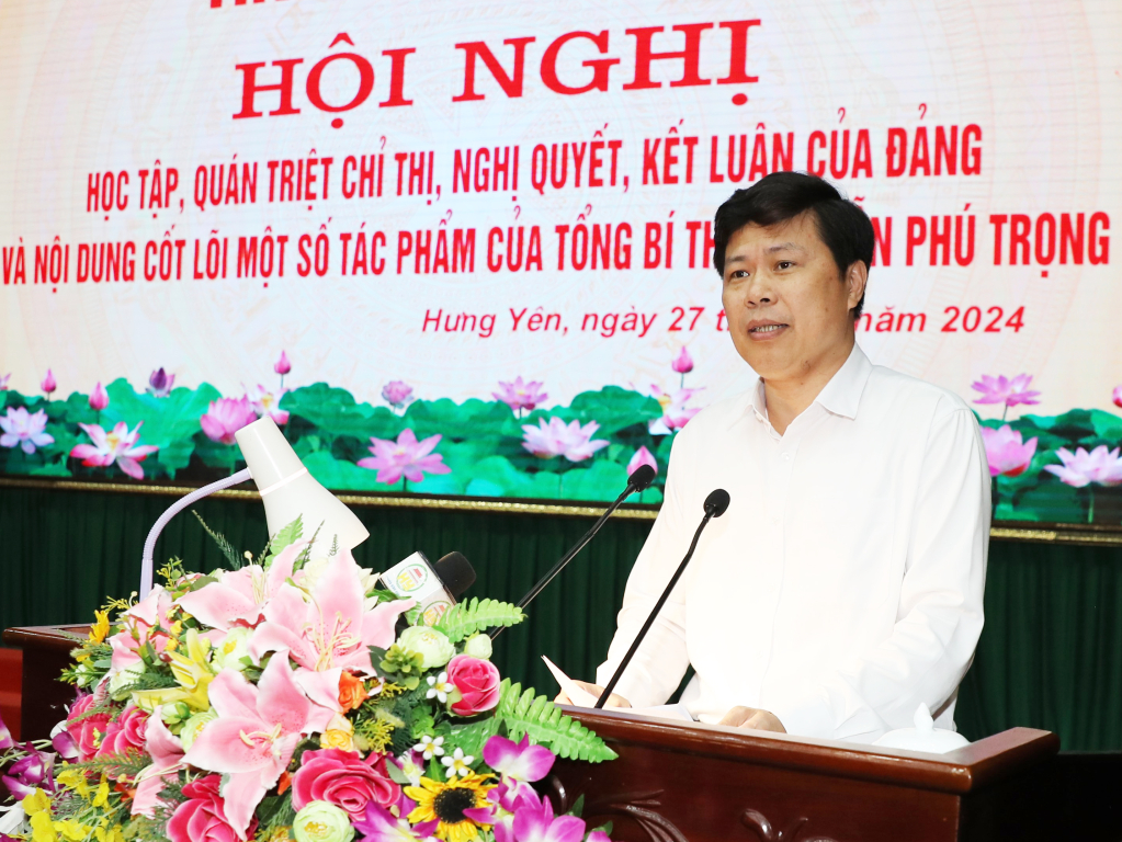 Phát biểu kết luận hội nghị, đồng chí Trần Quốc Toản, Phó Bí thư Thường trực Tỉnh ủy, Chủ tịch HĐND tỉnh đề nghị: Sau hội nghị, các cấp, các ngành, địa phương, đơn vị, các tổ chức đảng trong toàn Đảng bộ tỉnh quán triệt sâu sắc, tổ chức thực hiện nghiêm các chỉ thị, nghị quyết, quy định, kết luận của Bộ Chính trị, Ban Bí thư cũng như các kế hoạch của Tỉnh uỷ, nhất là những quy định về kiểm soát quyền lực, phòng, chống tham nhũng; công tác thực hành tiết kiệm, chống lãng phí; chú trọng xây dựng, củng cố, nâng cao năng lực, sức chiến đấu của tổ chức cơ sở đảng theo hướng thiết thực, sát hợp để xây dựng Đảng trong sạch, vững mạnh; kịp thời cụ thể hóa nội dung các chỉ thị, nghị quyết, kết luận của Đảng, các chương trình, kế hoạch của Tỉnh ủy, Ban Thường vụ Tỉnh ủy trên các lĩnh vực phù hợp với điều kiện thực tế của từng địa phương, cơ quan, đơn vị và triển khai tổ chức thực hiện bảo đảm hiệu lực, hiệu quả, đúng quy định; xây dựng kế hoạch và khẩn trương triển khai đợt sinh hoạt chính trị, tư tưởng sâu rộng về nội dung cốt lõi và giá trị các tác phẩm của Tổng Bí thư Nguyễn Phú Trọng; đẩy mạnh công tác thông tin, tuyên truyền, giáo dục lịch sử Đảng và truyền thống lịch sử của dân tộc, của địa phương; phát huy tinh thần yêu nước, niềm tự hào, khát vọng vươn lên để xây dựng quê hương Hưng Yên và đất nước ngày càng giàu mạnh, văn minh, văn hiến và anh hùng.