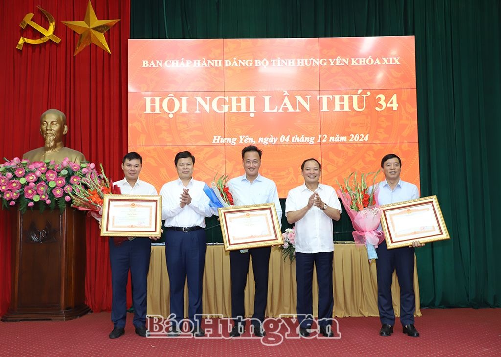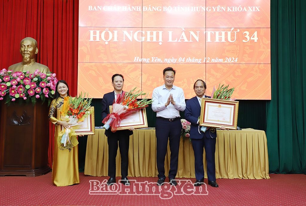 Tại hội nghị đã công bố và trao các quyết định của Chủ tịch nước, Thủ tướng Chính phủ tặng một số đồng chí. Theo đó, Chủ tịch nước tặng Huân chương Lao động hạng Nhất cho đồng chí Doãn Anh Quân, nguyên Bí thư Huyện ủy Tiên Lữ; tặng Huân chương Lao động hạng Ba cho đồng chí Nguyễn Thị Thanh Tuyết, Phó Trưởng ban Thường trực Ban Dân vận Tỉnh ủy và đồng chí Nguyễn Văn Thơ, Bí thư Huyện ủy Tiên Lữ. Thủ tướng Chính phủ tặng Bằng khen cho các đồng chí: Nguyễn Hữu Nghĩa, Ủy viên BCH Trung ương Đảng, Bí thư Tỉnh ủy; Nguyễn Lê Huy, Ủy viên Ban Thường vụ Tỉnh ủy, Phó Chủ tịch Thường trực UBND tỉnh; Nguyễn Hùng Nam, Phó Chủ tịch UBND tỉnh và Đinh Hồng Quyên, Chánh Văn phòng UBND tỉnh. Dịp này, BCH Đảng bộ tỉnh chia tay một số đồng chí Tỉnh ủy viên nghỉ chế độ theo quy định và chuyển công tác.