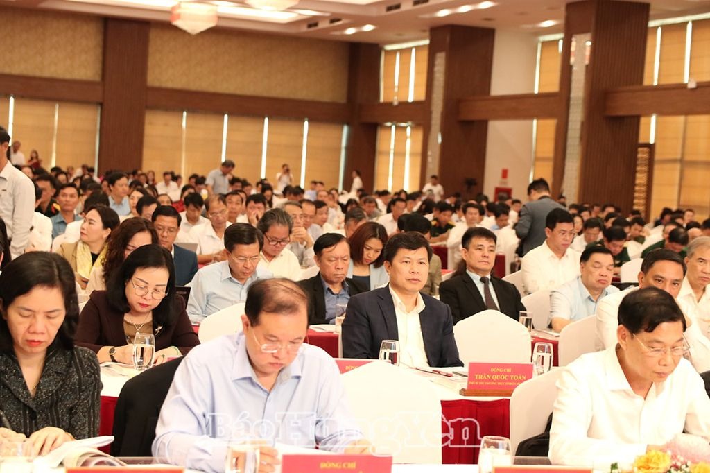 Đồng chí Trần Quốc Toản, Phó Bí thư Thường trực Tỉnh ủy, Chủ tịch HĐND tỉnh và lãnh đạo các cơ quan, đơn vị tỉnh Hưng Yên bên lề hội nghị