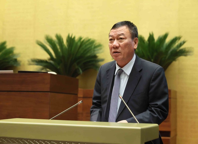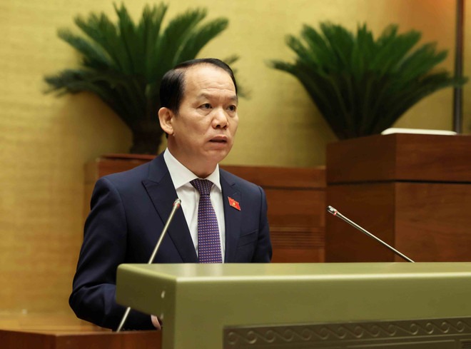 Tổng Thanh tra Chính phủ Đoàn Hồng Phong, thừa ủy quyền của Thủ tướng Chính phủ trình bày Tờ trình dự án Luật Thanh tra (sửa đổi). (Ảnh: An Đăng/TTXVN)