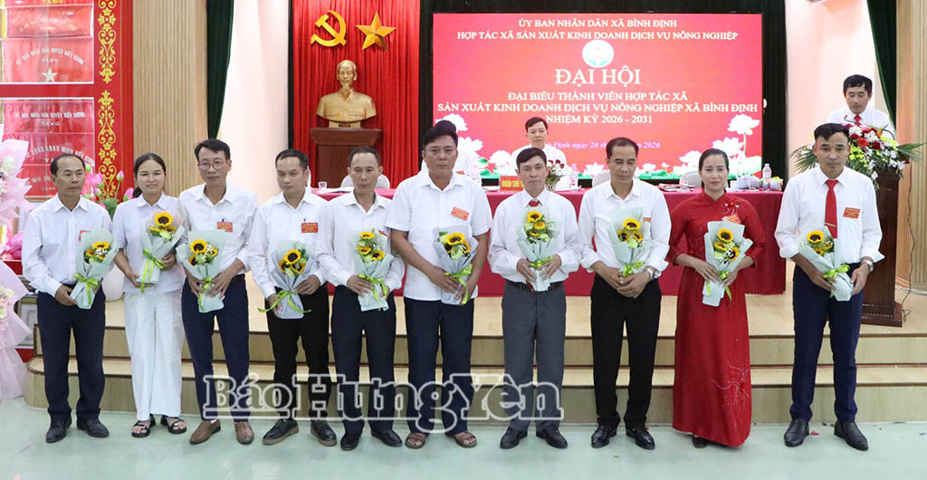 Ngày 28/4, Hợp tác xã Sản xuất kinh doanh dịch vụ nông nghiệp (HTX SXKD DVNN) xã Bình Định tổ chức Đại hội đại biểu thành viên nhiệm kỳ 2026 - 2031.