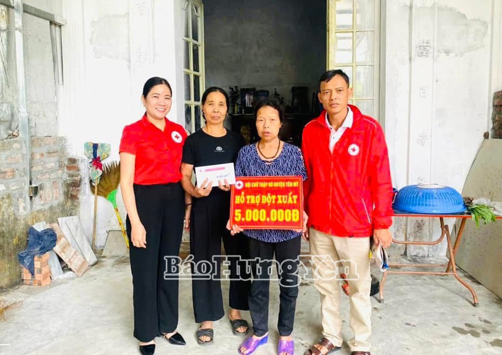 Hội Chữ thập đỏ huyện Yên Mỹ hỗ trợ gia đình bà Đỗ Thị Thơm ở xã Liêu Xá (Yên Mỹ)