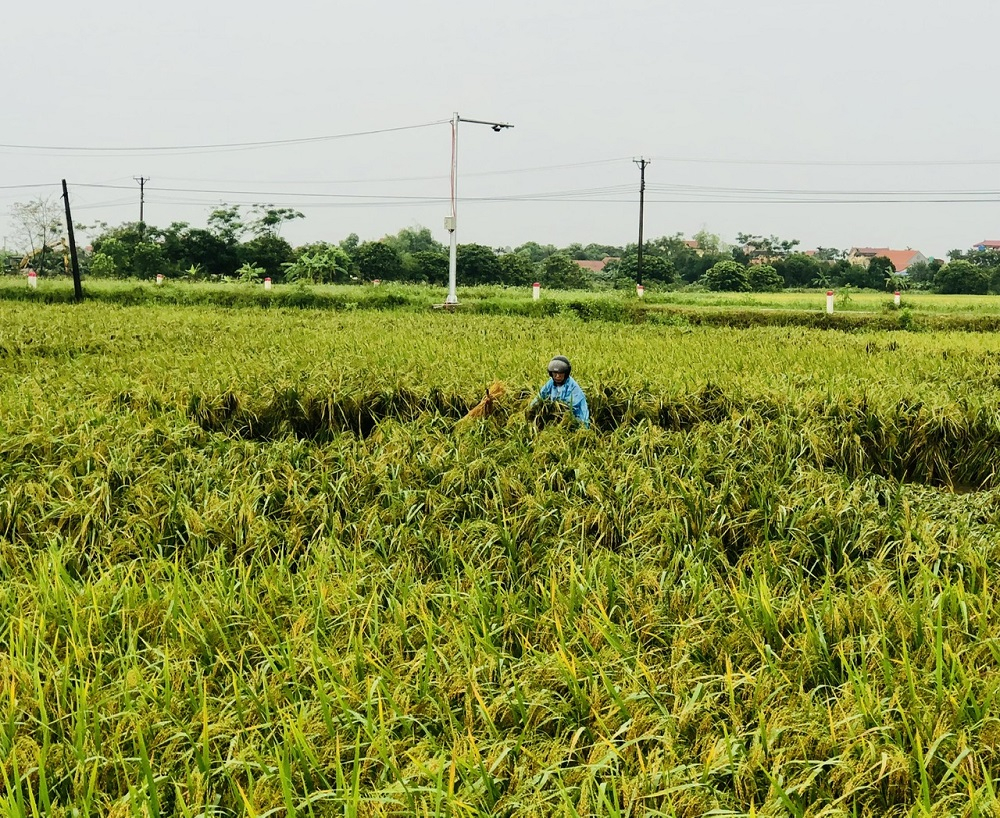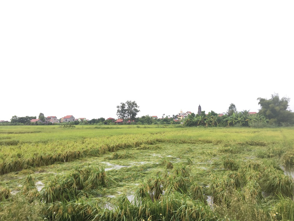 Diện tích lúa mùa ở xã Vũ Xá (Kim Động) bị đổ do mưa lớn