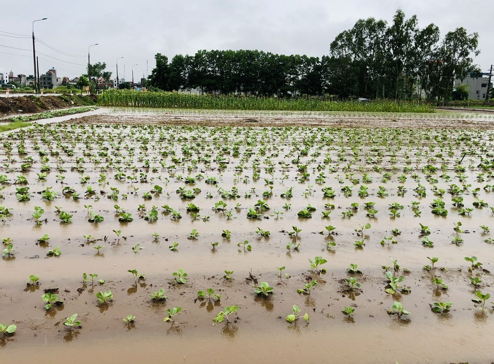 Diện tích trồng cải bắp tại xã Trung Nghĩa (thành phố Hưng Yên) bị ngập nước