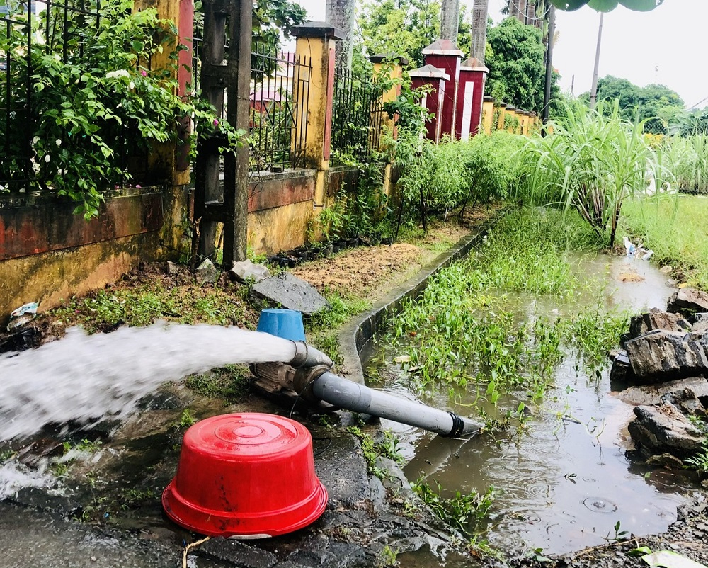 Nông dân xã Quang Hưng (Phù Cừ) sử dụng máy bơm nước tiêu úng
