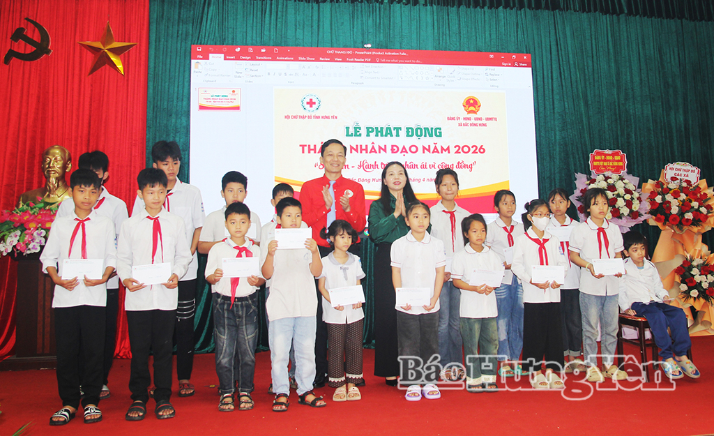 Tháng Nhân đạo năm 2026 với chủ đề “80 năm - Hành trình nhân ái vì cộng đồng” diễn ra từ ngày 1-31/5, trong đó cao điểm từ ngày 8-19/5. Qua đó, hướng tới mục tiêu tiếp tục lan tỏa sâu rộng tinh thần nhân ái trong toàn xã hội; phát huy vai trò nòng cốt của Hội Chữ thập đỏ các cấp tỉnh Hưng Yên trong công tác nhân đạo, nhất là kết nối, điều phối nguồn lực; đồng thời đẩy mạnh chuyển đổi số trong hoạt động nhân đạo, nâng cao tính công khai, minh bạch và hiệu quả.