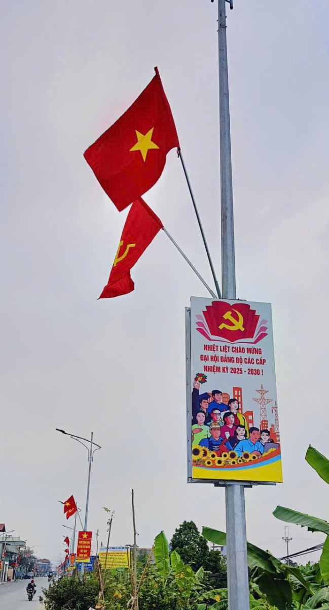 Xã Tống Trân treo khẩu hiệu chào mừng Đại hội đại biểu toàn quốc lần thứ XIV của Đảng