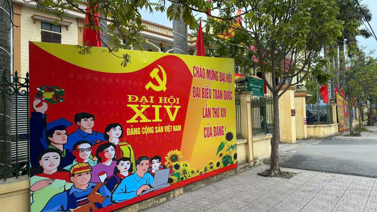 Xã Long Hưng treo khẩu hiệu chào mừng Đại hội đại biểu toàn quốc lần thứ XIV của Đảng