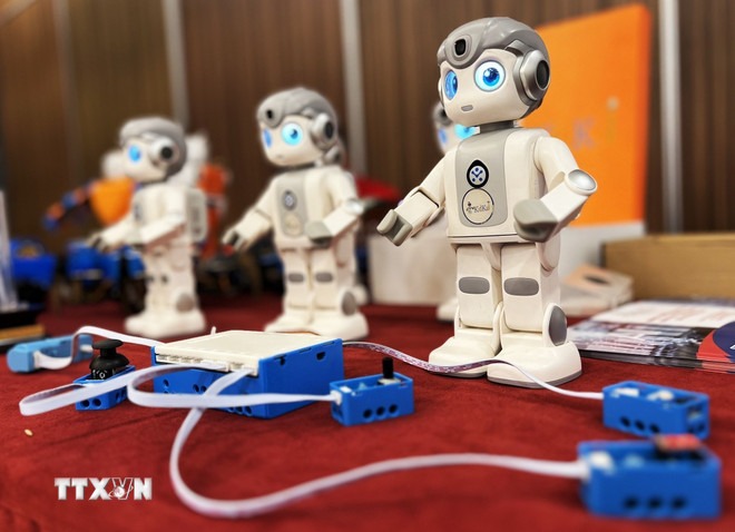 Sản phẩm công nghệ và đổi mới sáng tạo được trưng bày tại một hội thảo về khoa học công nghệ và đổi mới sáng tạo trình độ quốc tế tại Cần Thơ. (Ảnh: Ánh Tuyết/TTXVN)