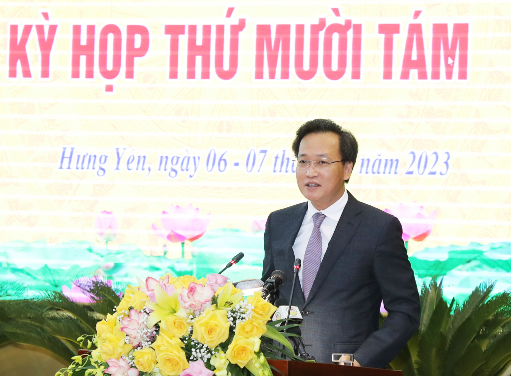 Phát biểu chỉ đạo tại kỳ họp, đồng chí Bí thư Tỉnh ủy Nguyễn Hữu Nghĩa ghi nhận và đánh giá cao sự quyết liệt trong công tác lãnh đạo, chỉ đạo, điều hành của Tỉnh ủy, HĐND, UBND tỉnh. Kết quả trong phát triển kinh tế, xã hội của tỉnh đạt được trong năm 2023 góp phần to lớn để tỉnh Hưng Yên thực hiện thành công Nghị quyết Đại hội Đảng bộ tỉnh Hưng Yên nhiệm kỳ 2020 – 2025. Đồng chí Bí thư Tỉnh ủy đề nghị: HĐND tỉnh tập trung xem xét, thảo luận, cho ý kiến nghiêm túc, trách nhiệm, quyết định đúng đắn các nội dung quan trọng của kỳ họp về kinh tế - xã hội, ngân sách nhà nước, đầu tư công năm 2024; tiếp tục đổi mới và nâng cao chất lượng tổ chức các kỳ họp HĐND; phát huy hiệu quả hoạt động giám sát nhất là giám sát chuyên đề, giám sát trực tiếp tại kỳ họp; đổi mới hoạt động chất vấn, giải trình về các vấn đề mà cử tri quan tâm; đẩy mạnh ứng dụng công nghệ thông tin, chuyển đổi số phục vụ hoạt động của HĐND tỉnh; tăng cường công tác thông tin, tuyên truyền về hoạt động của HĐND tỉnh trên các phương tiện thông tin đại chúng. Các đại biểu HĐND tỉnh nêu cao tinh thần trách nhiệm, thực hiện tốt vai trò đại diện cho ý chí, nguyện vọng của cử tri, Nhân dân, không ngừng tự rèn luyện, nâng cao năng lực, trình độ, kỹ năng hoạt động đáp ứng yêu cầu, nhiệm vụ được giao…