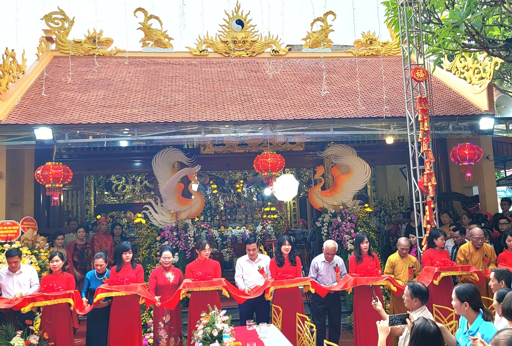 Các đại biểu cắt băng khánh thành trùng tu, tôn tạo đền