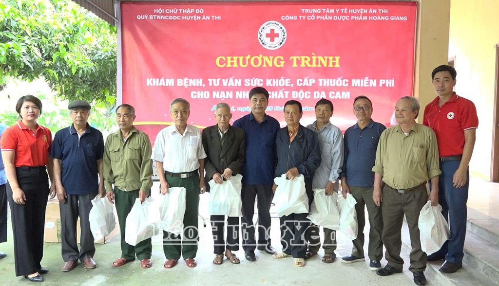 Trong 2 ngày 27 và 28/5, Hội Chữ thập đỏ huyện Ân Thi phối hợp với Trung tâm Y tế huyện Ân Thi và Công ty Cổ phần Dược phẩm Hoàng Giang tổ chức khám bệnh, tư vấn sức khỏe và cấp thuốc miễn phí cho 340 đối tượng là nạn nhân chất độc da cam trên địa bàn huyện Ân Thi.Tại 3 điểm khám là trạm y tế xã Bãi Sậy, thị trấn Ân Thi và xã Nguyễn Trãi, đội ngũ, y, bác sỹ của Trung tâm Y tế huyện đã khám tổng thể, đo huyết áp, điện tim, siêu âm, tư vấn sức khỏe… cho 340 đối tượng là các nạn nhân chất độc da cam. Ngoài ra, người đến khám được nhận quà và thuốc, mỗi suất quà trị giá 500 nghìn đồng, với tổng trị giá là 170 triệu đồng (trích từ Quỹ Bảo trợ nạn nhân chất độc da cam).