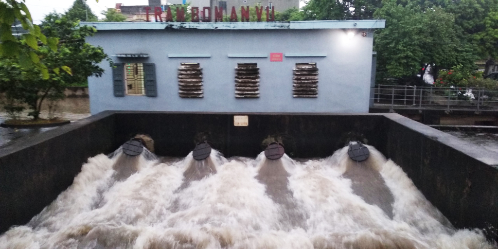 Bơm tiêu úng tại trạm bơm An Vũ (thành phố Hưng Yên)