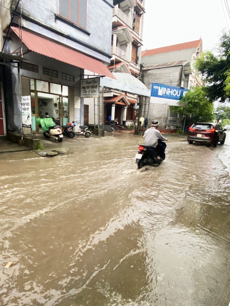 Mưa gây ngập úng cục bộ tại một số tuyến đường trong khu dân cư ở xã Lạc Đạo (Văn Lâm)