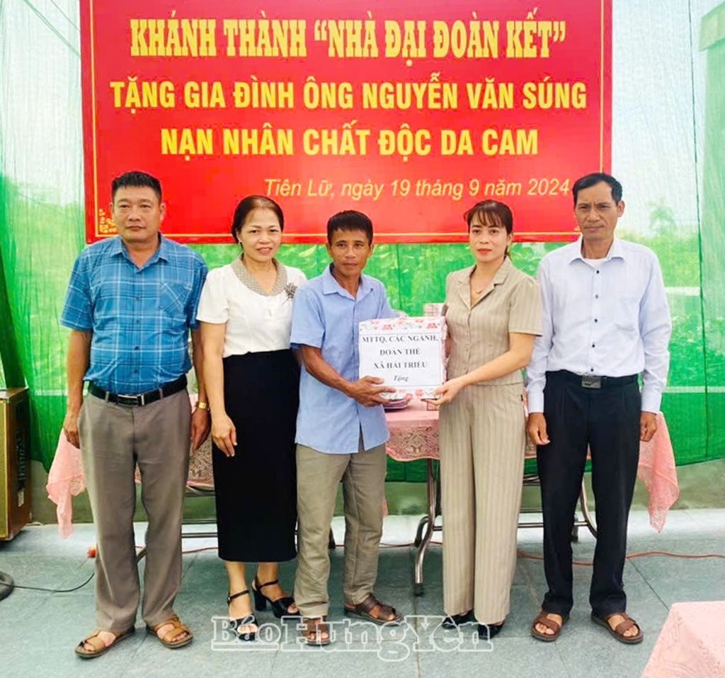 Ngày 19/9, Ban Chỉ huy quân sự huyện Tiên Lữ phối hợp với Hội đồng quản lý Quỹ bảo trợ nạn nhân chất độc da cam huyện tổ chức khánh thành “nhà đại đoàn kết” tặng gia đình ông Nguyễn Văn Súng, là nạn nhân chất độc da cam ở thôn Hải Yến, xã Hải Triều ( Tiên Lữ).