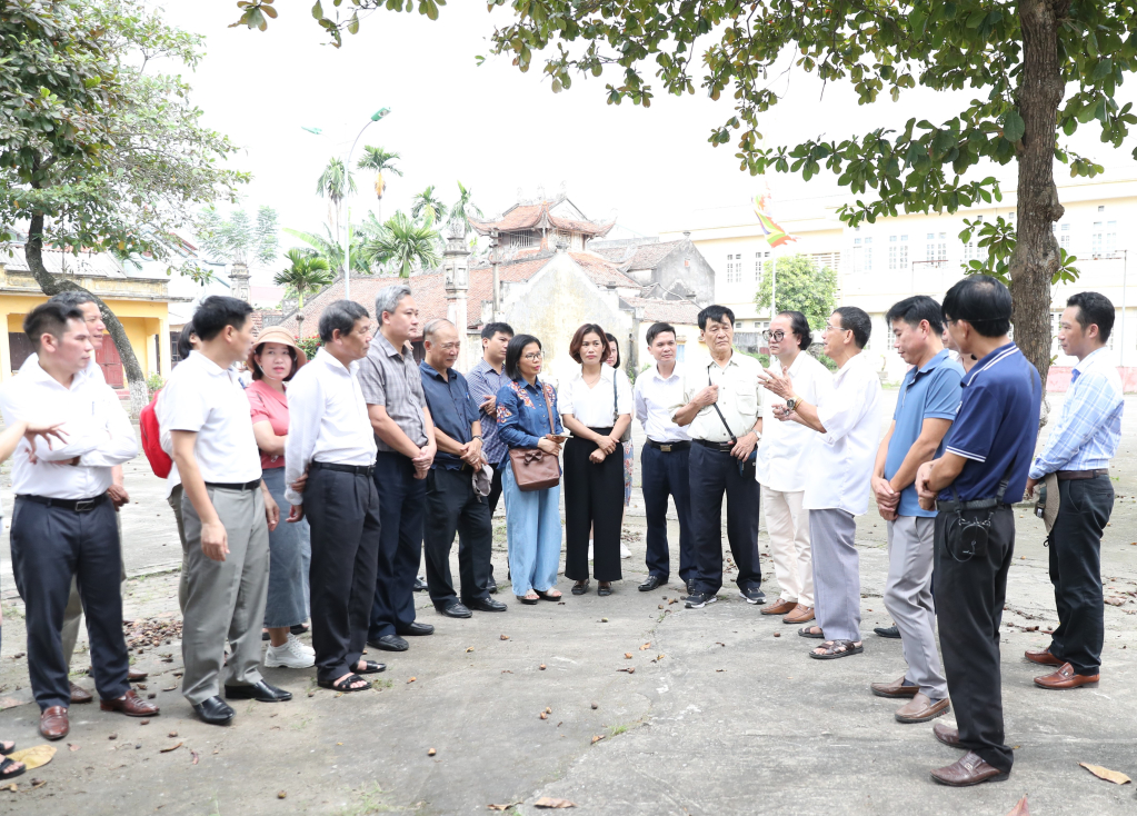 Các đại biểu khảo sát tại đình Thượng, xã Tự Nhiên, huyện Thường Tín (Hà Nội)