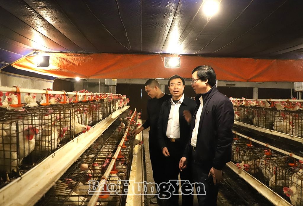 Các đại biểu tham quan mô hình chăn nuôi ở xã Chính Nghĩa (Kim Động)