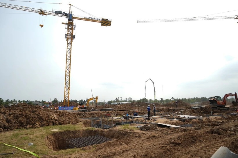 Thi công xây dựng Bệnh viện Đa khoa tỉnh Bến Tre với tổng mức đầu tư 1.658 tỷ đồng. (Ảnh: Công Trí/TTXVN)