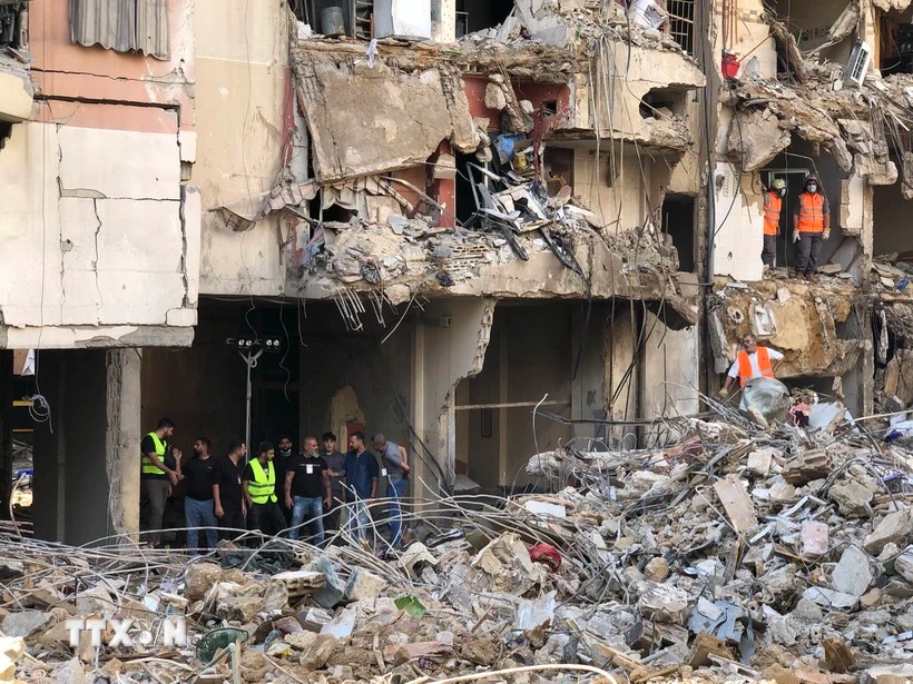 Hiện trường cuộc tấn công của Israel tại Beirut, Liban ngày 21/9/2024. (Ảnh: THX/TTXVN)