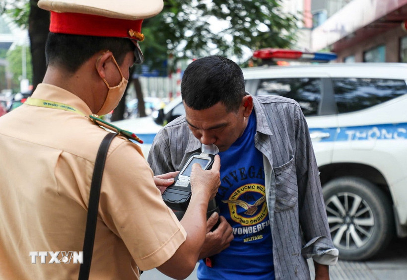 Kiểm tra nồng độ cồn. (Nguồn: TTXVN)