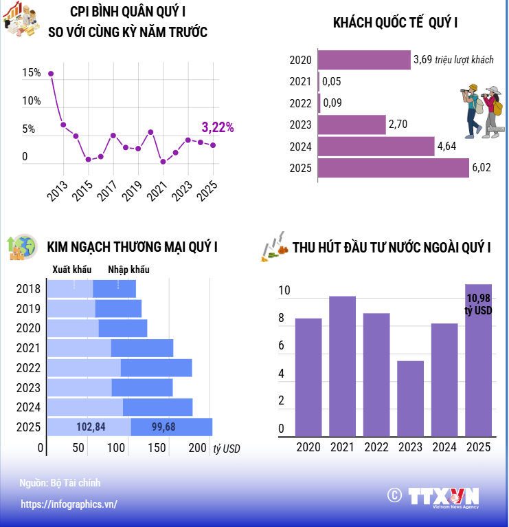 Quý 1/2025, kinh tế Việt Nam có dấu hiệu khởi sắc, nhiều chỉ số cho thấy mức tăng trưởng rất tích cực trong bối cảnh thế giới vẫn còn nhiều biến động.