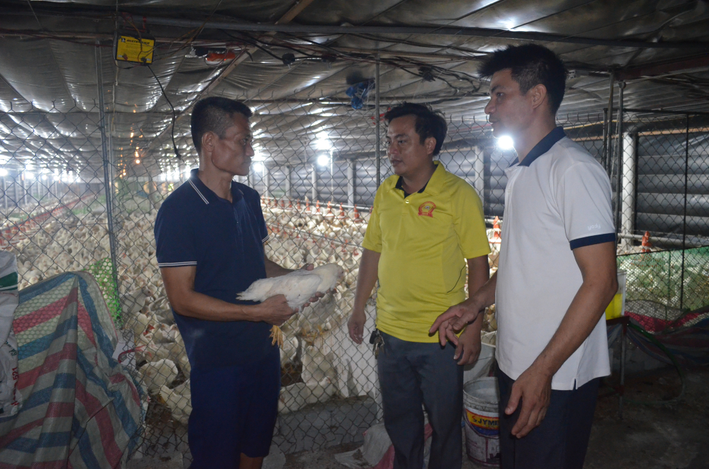 Hội Nông dân huyện Kim Động hướng dẫn kỹ thuật chăn nuôi gà đẻ trứng cho thành viên Hợp tác xã chăn nuôi Nguyễn Gia (Kim Động)