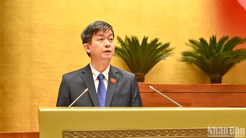 Chủ nhiệm Ủy ban Pháp luật Hoàng Thanh Tùng trình bày báo cáo thẩm tra. (Ảnh: DUY LINH)