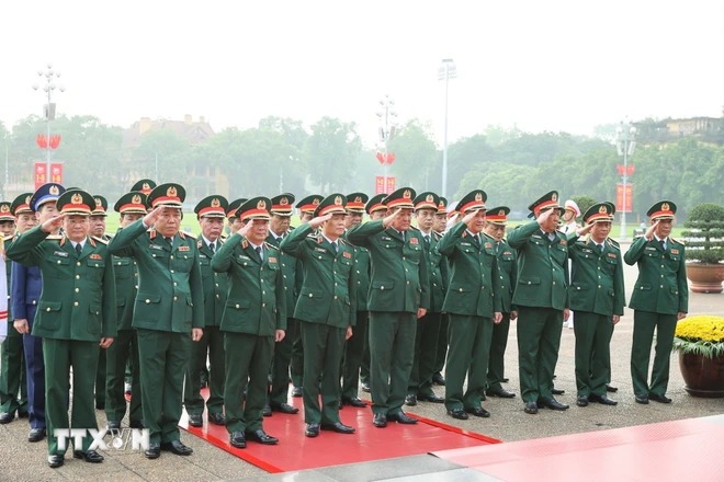 Đoàn đại biểu Quân ủy Trung ương, Bộ Quốc phòng vào Lăng viếng Chủ tịch Hồ Chí Minh. (Ảnh: Dương Giang/TTXVN)