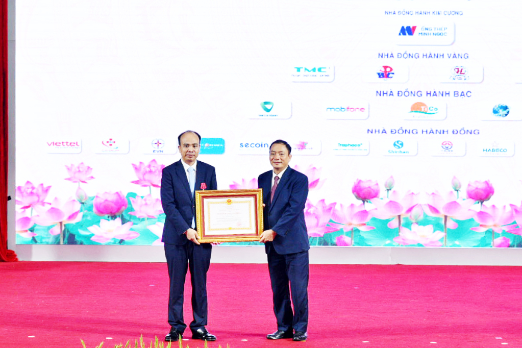 Thừa ủy quyền của Chủ tịch nước, đồng chí Trần Quốc Văn, Phó Bí thư Tỉnh ủy, Chủ tịch UBND tỉnh trao Huân chương Lao động hạng Nhì tặng Tổng Giám đốc Công ty cổ phần Tiên Hưng Phạm Tuấn Anh
