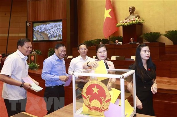 Quốc hội thông qua Nghị quyết xác nhận kết quả lấy phiếu tín nhiệm đối với những người giữ chức vụ do Quốc hội bầu, phê chuẩn. (Ảnh: Phương Hoa/TTXVN)