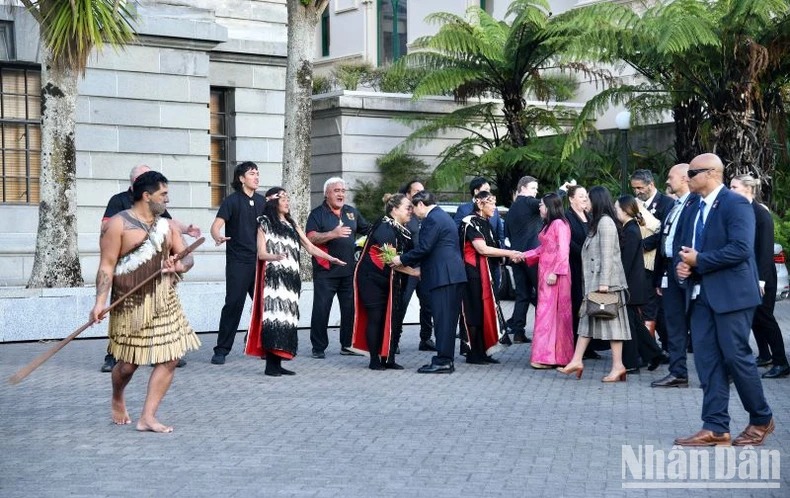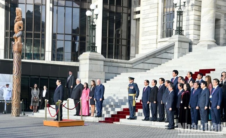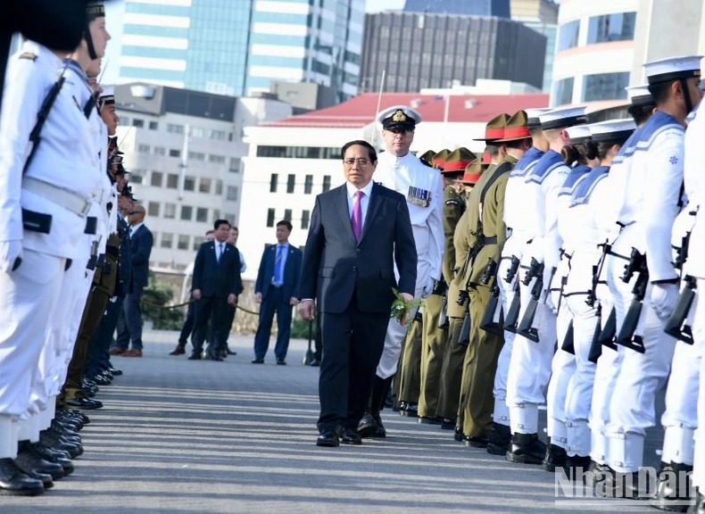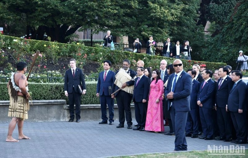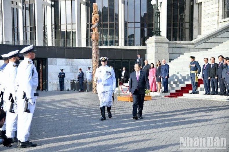 Sáng 11/3 (giờ địa phương), tại thủ đô Wellington, Thủ tướng New Zealand Christopher Luxon và Phu nhân chủ trì lễ đón chính thức Thủ tướng Phạm Minh Chính và Phu nhân cùng Đoàn đại biểu cấp cao Chính phủ Việt Nam. Cùng dự lễ đón có Chủ tịch Quốc hội New Zealand Gerry Brownlee. Lễ đón được thực hiện theo nghi thức truyền thống của thổ dân Maori, dành cho khách quý và có chức sắc, địa vị cao.