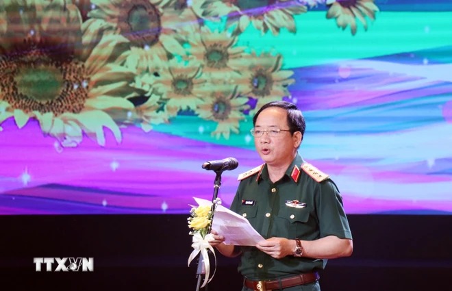 Thượng tướng Trịnh Văn Quyết, Phó Chủ nhiệm Tổng cục Chính trị QĐND Việt Nam, Trưởng Ban chỉ đạo Liên hoan phát biểu khai mạc. (Ảnh: Xuân Khu/TTXVN)